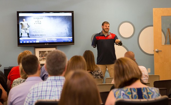 SSG Travis Mills speaks to Carpet One employees in Manchester, NHTravis has been speaking at events around the country inspiring others to 'Never give up. Never quit.', he has also been raising awareness about the Travis Mills Foundation - and if that isn't enough - Travis has also just finished writing a book! Tough As They Come tells the story of Travis's remarkable journey as one of five soldiers from the wars in Afghanistan and Iraq to survive a quadruple amputation.